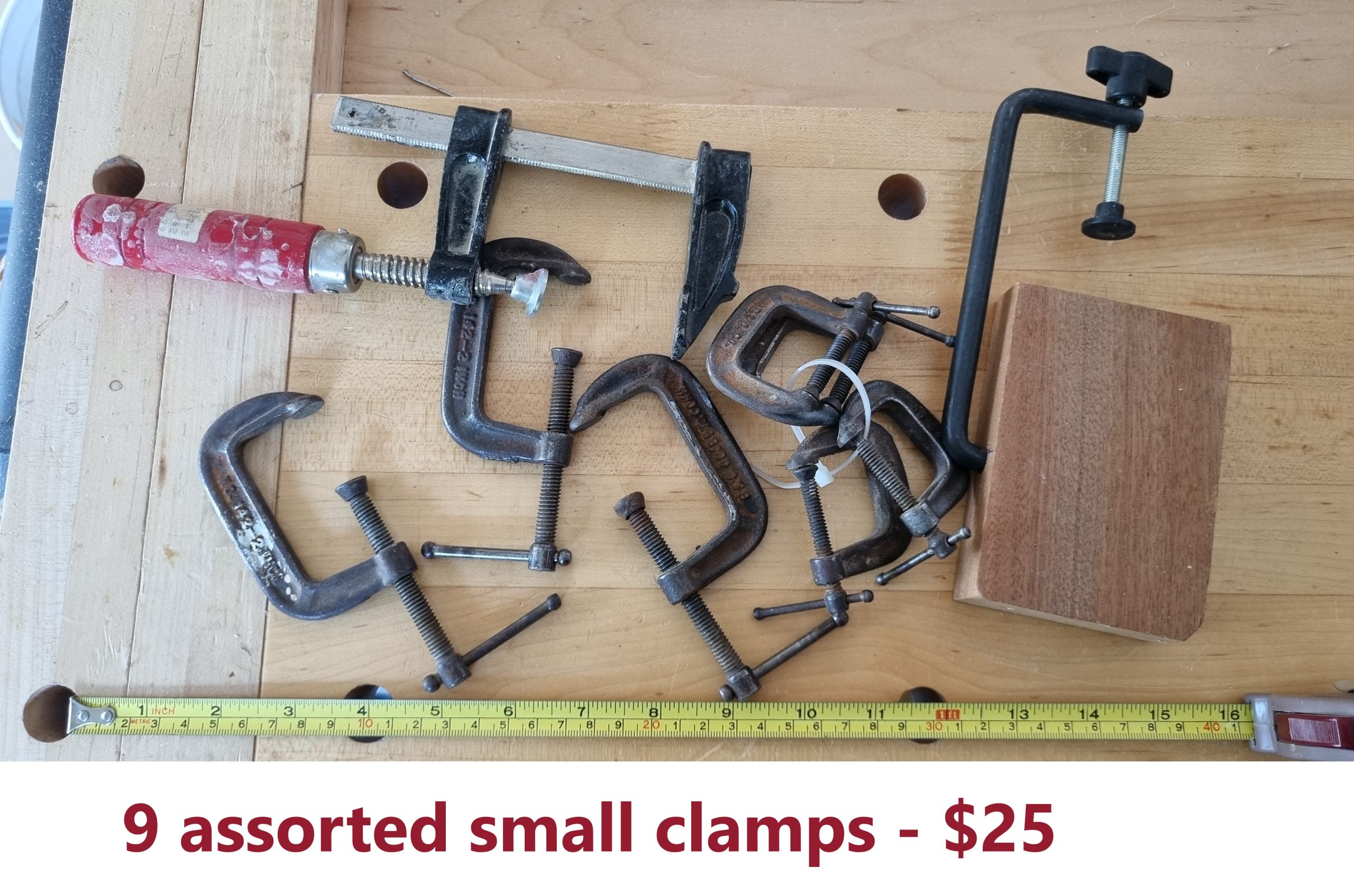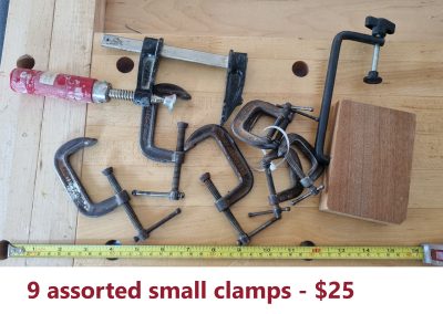 1) 9 assorted small clamps $25
